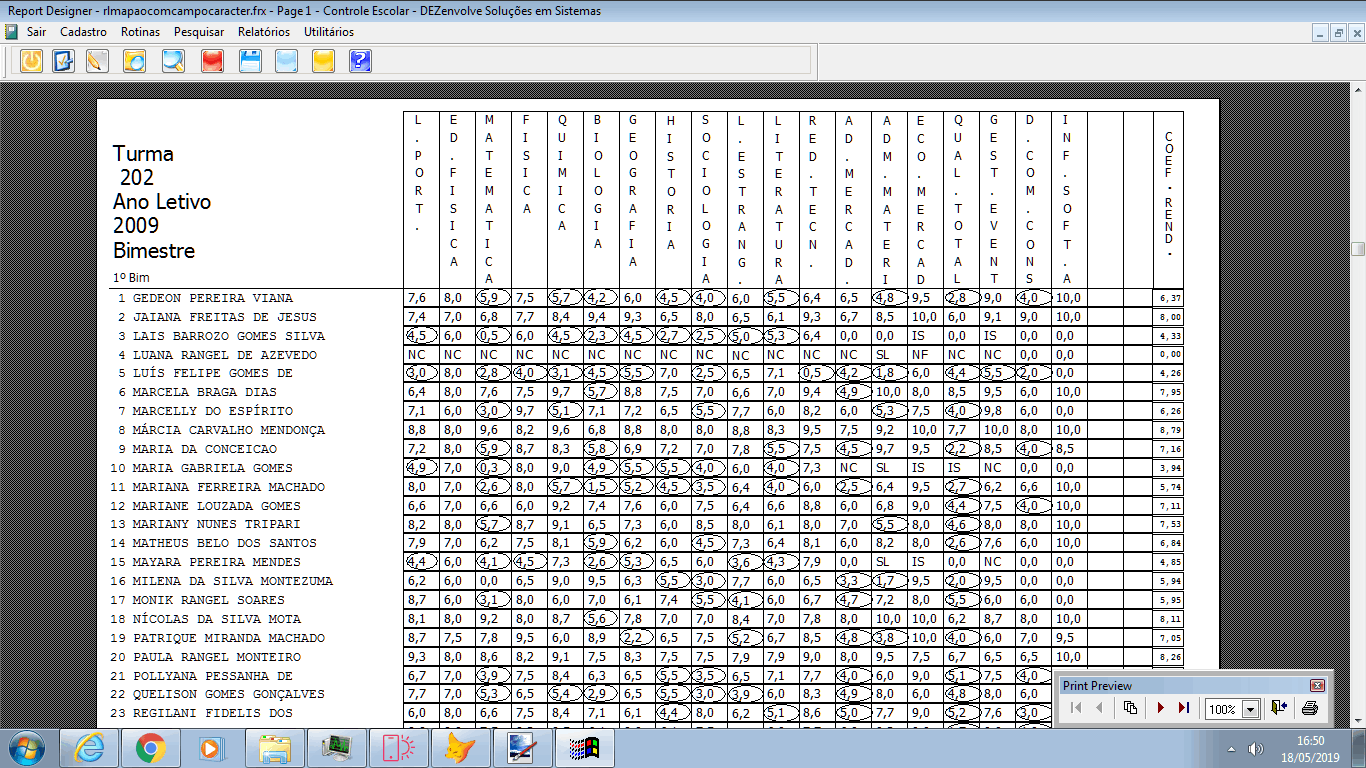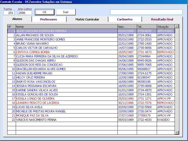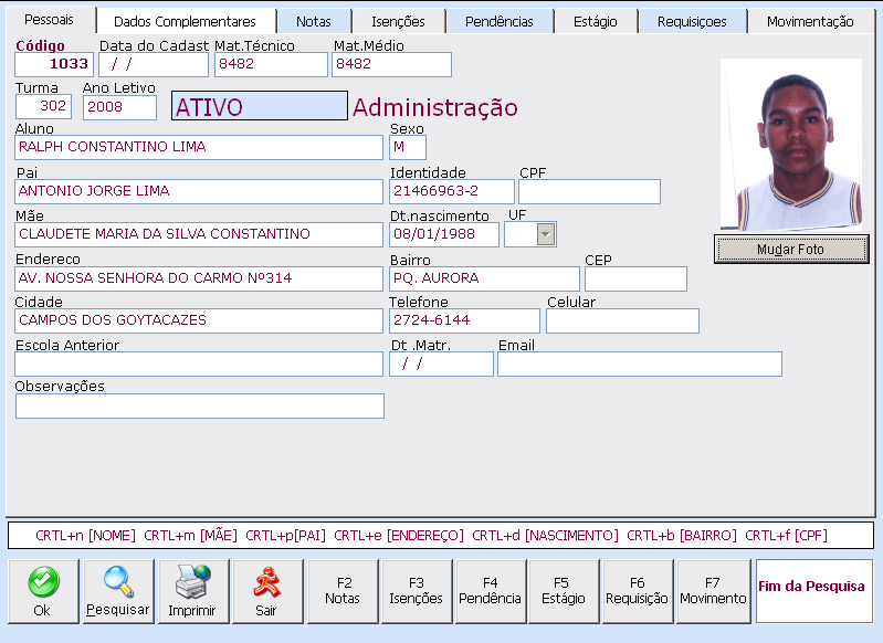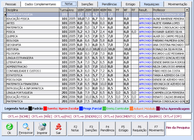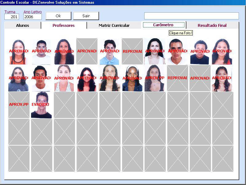 Essa tela possibilita avisualização da foto do aluno e com um duplo clique emcima da foto podemos ver as notas.