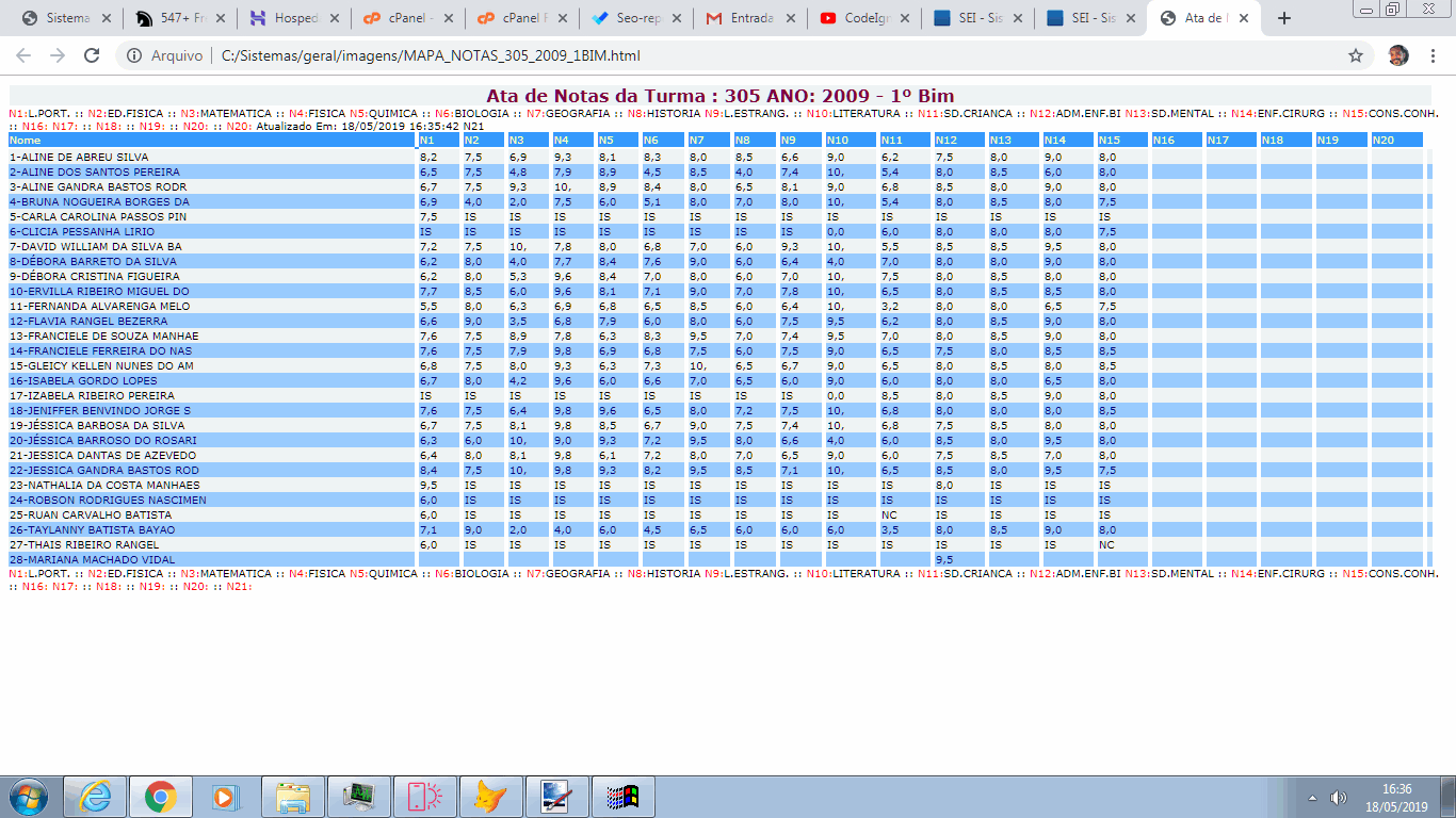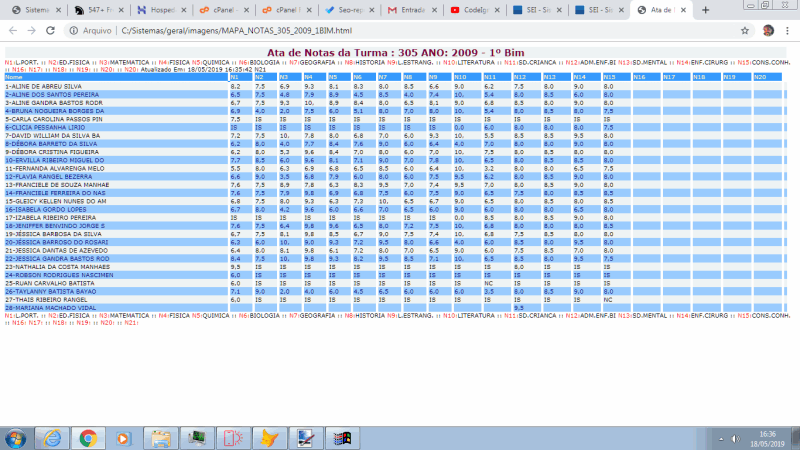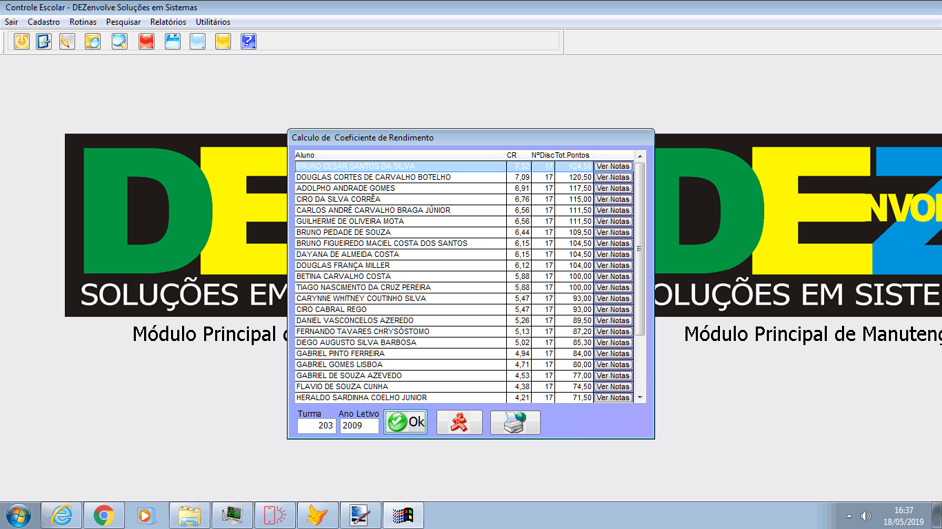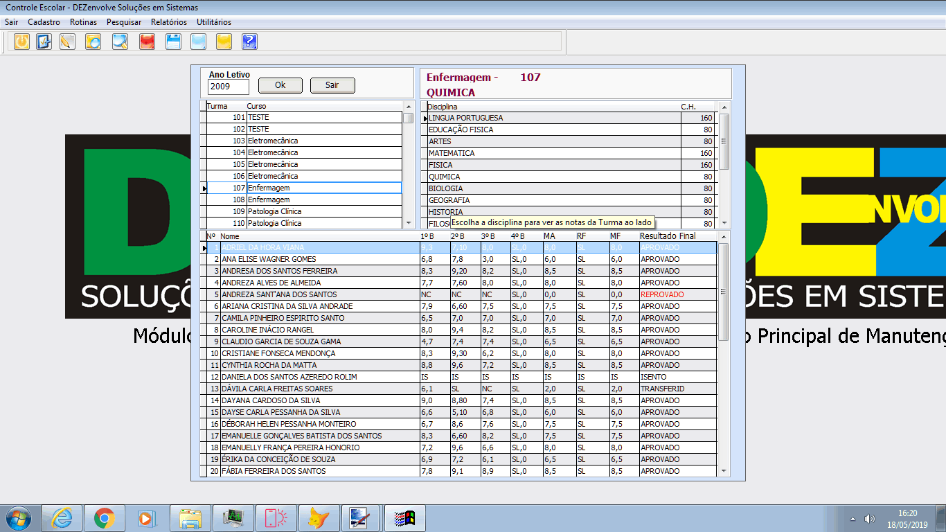 Modulo para obter nomes dos alunos , professores x disciplinas, carômetro e notas , tudo de uma turma selecionada.