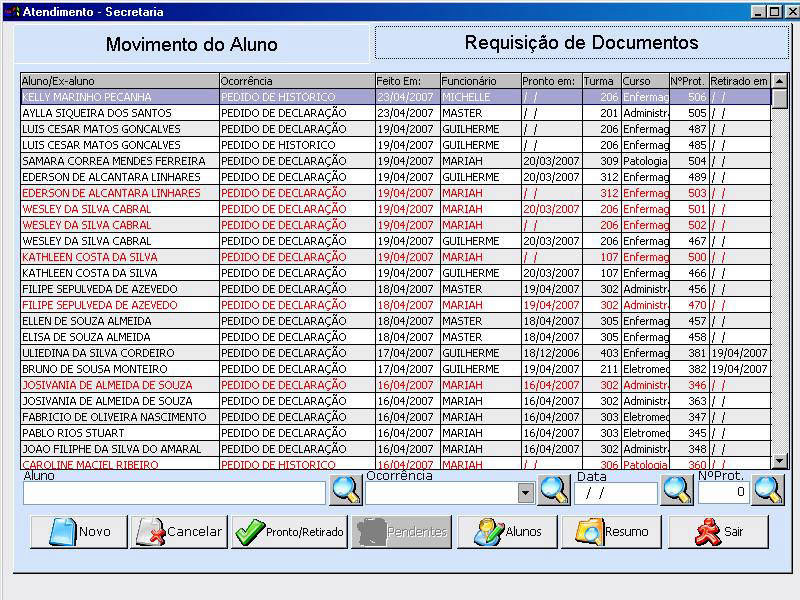Módulo que realiza registro de pedidos de documentos à Secretaria Escolar.